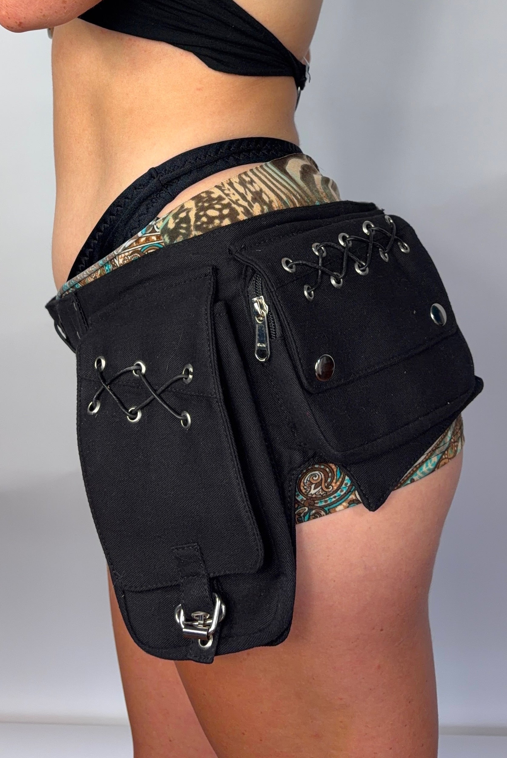 I've got clipping points for my fox fur tail, my axolotl kandi Vicks holder, pockets for phone, ID/CC, trinkets etc, and space for even more.