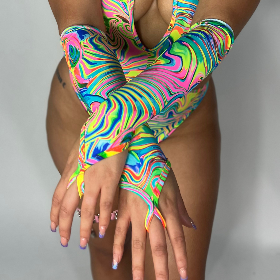 Complete your festival-ready look with our Rainbow Trippin’ Balls Gloves, designed to perfectly match our bodysuits and sets. Made to fit most with a one-size design, these gloves add a bold, colorful touch to your outfit. Plus size available – just select ‘Queen’ and add any necessary notes or measurements. Ideal for raves, parties, or photo-ready sets.