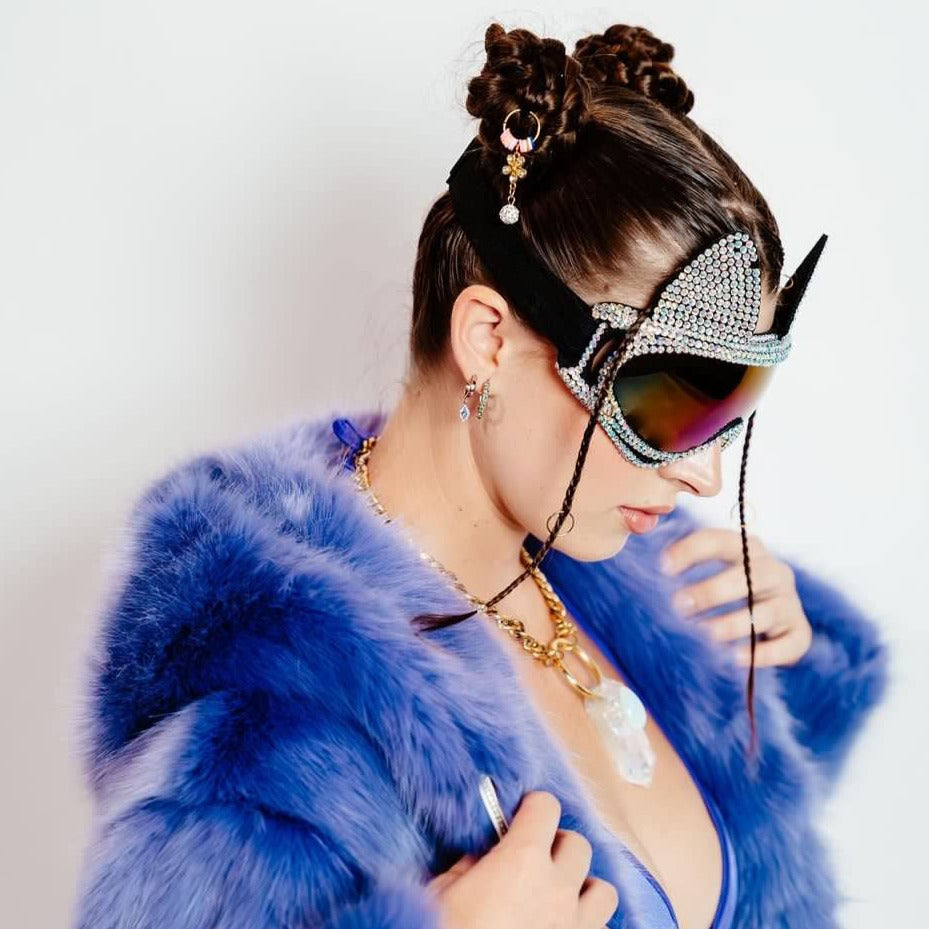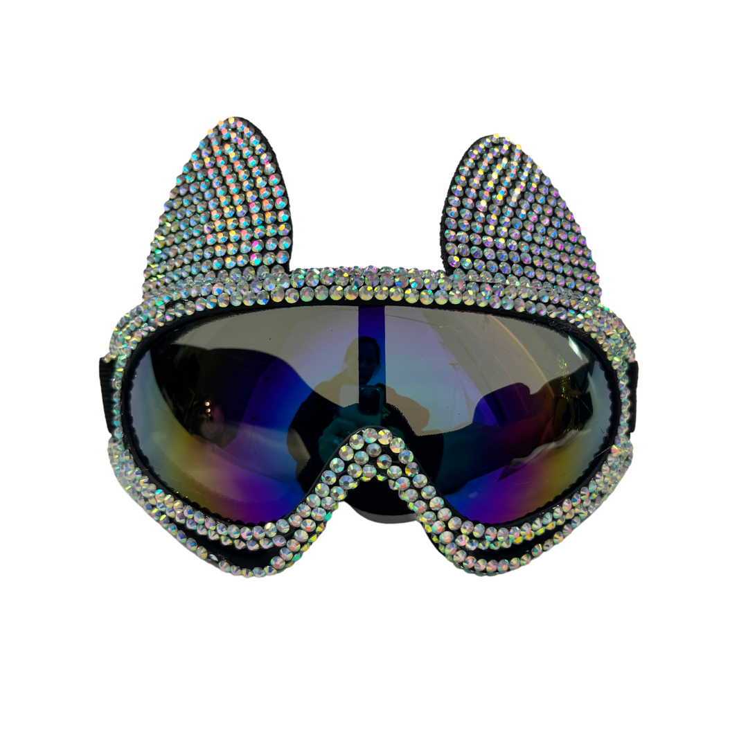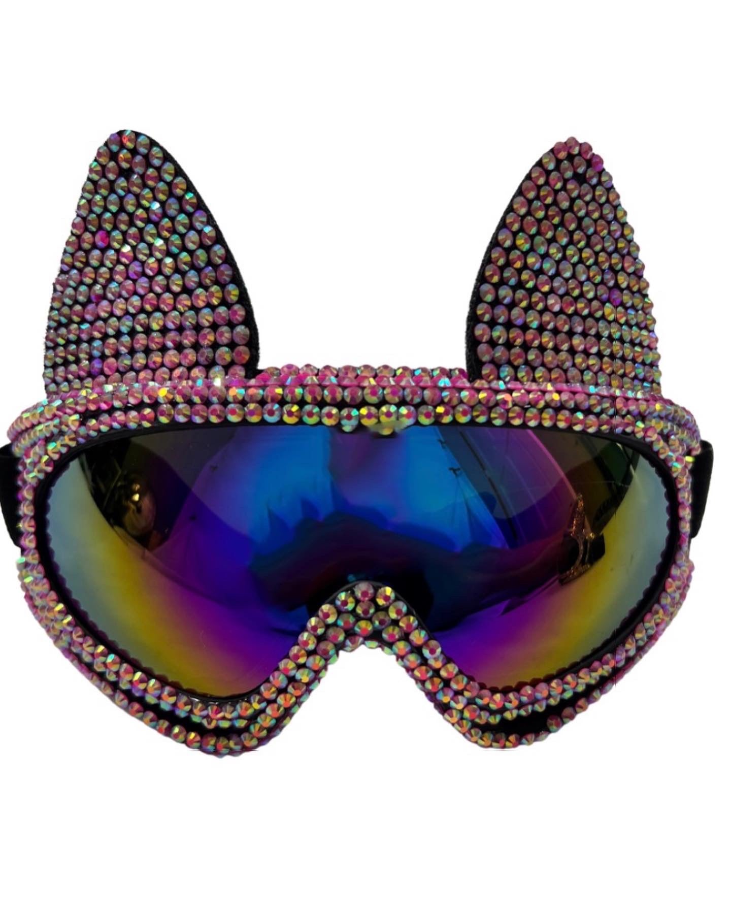 Kitty Goggles, available in Iridescent, Pink, Black, or Silver with a dazzling rhinestone finish. Perfect for festivals, raves, or Burning Man, these stylish goggles shield your eyes from dust while adding a glamorous, statement-making touch to your outfit. Lightweight, adjustable, comfortable, and festival-ready, they’re a must-have accessory for anyone looking to shine on the dance floor or in the desert.
