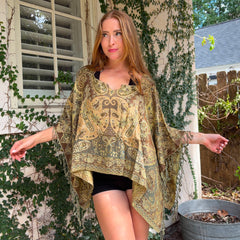 Sweet and radiant, Honey is a golden pashmina shrug top that brings warm, glowing energy to any rave outfit. Its soft woven fabric makes it cozy enough for chill mornings and sunset sets, while the lightweight drape keeps you cute and comfortable. This shrug adds the perfect boho-wook touch to your festival look, pairing beautifully with neutrals, metallics, or earthy tones.